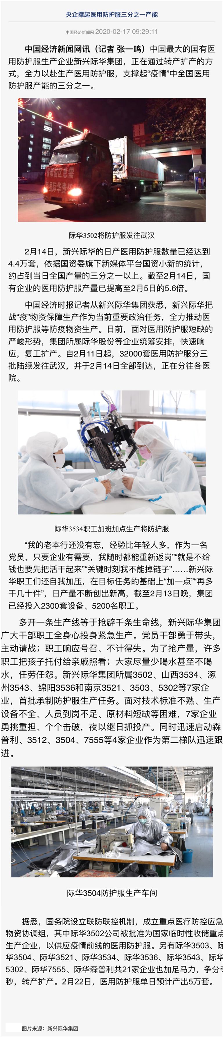 《中國經濟新聞網》央企撐起醫用防護服三分之一産能