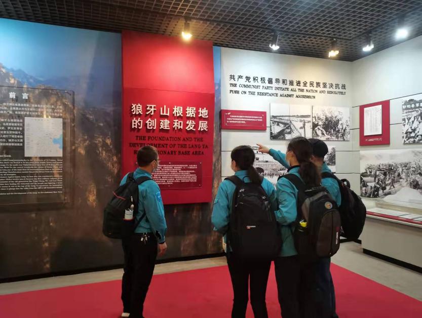 帶着對五壯士無限崇仰的心情,大家默默地參觀了狼牙山五壯士陳列館。一個個曆史資料、圖片、文物、戰鬥場景雕塑等,真實生動地反映了抗日戰争年代軍民的英勇鬥争和可歌可泣的大無畏英雄主義精神,揭露了日本侵略軍滅絕人寰的滔天罪行,再現了狼牙山五壯士面對百倍敵人,為了掩護主力和群衆轉移突圍,在狼牙山閻王鼻子、棋盤陀阻擊敵人,最後彈盡,銷毀武器,集體跳崖殉國……大家默默地凝視着,觀看者,體味着,思考着……五壯士不懼強敵、不怕犧牲、英勇頑強、視死如歸的精神深深地震撼着每一個人,激發了大家強烈的愛國熱情和不畏艱難、勇于拼搏的奮進力量。