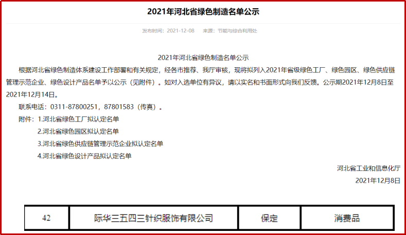 近日傳來喜訊,經保定市推薦,河北省工業和信息化廳審核,公司被成功評為河北省綠色工廠。