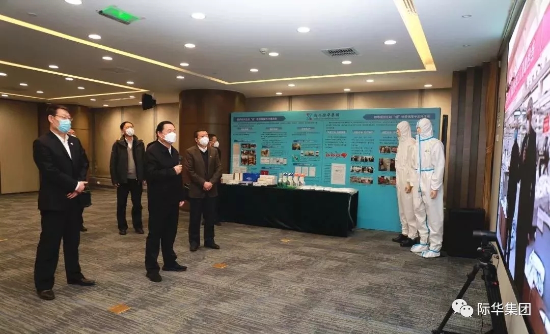 2月7日,國資委黨委書記、主任、應對新型冠狀病毒感染肺炎疫情工作領導小組組長郝鵬視頻指導3502公司防護服生産。集團公司黨委書記、董事長張雅林,總經理楊彬陪同指導。